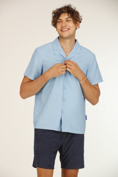 • Chemise Cubaine en Soie | Bleu Ciel
