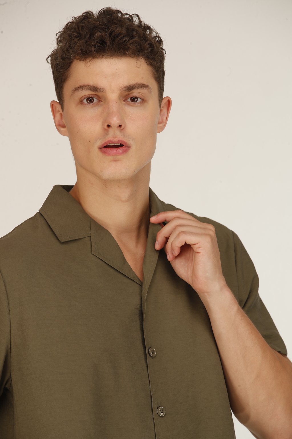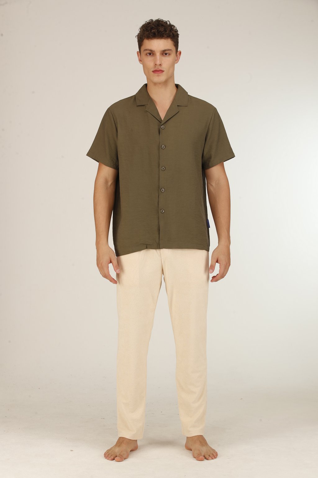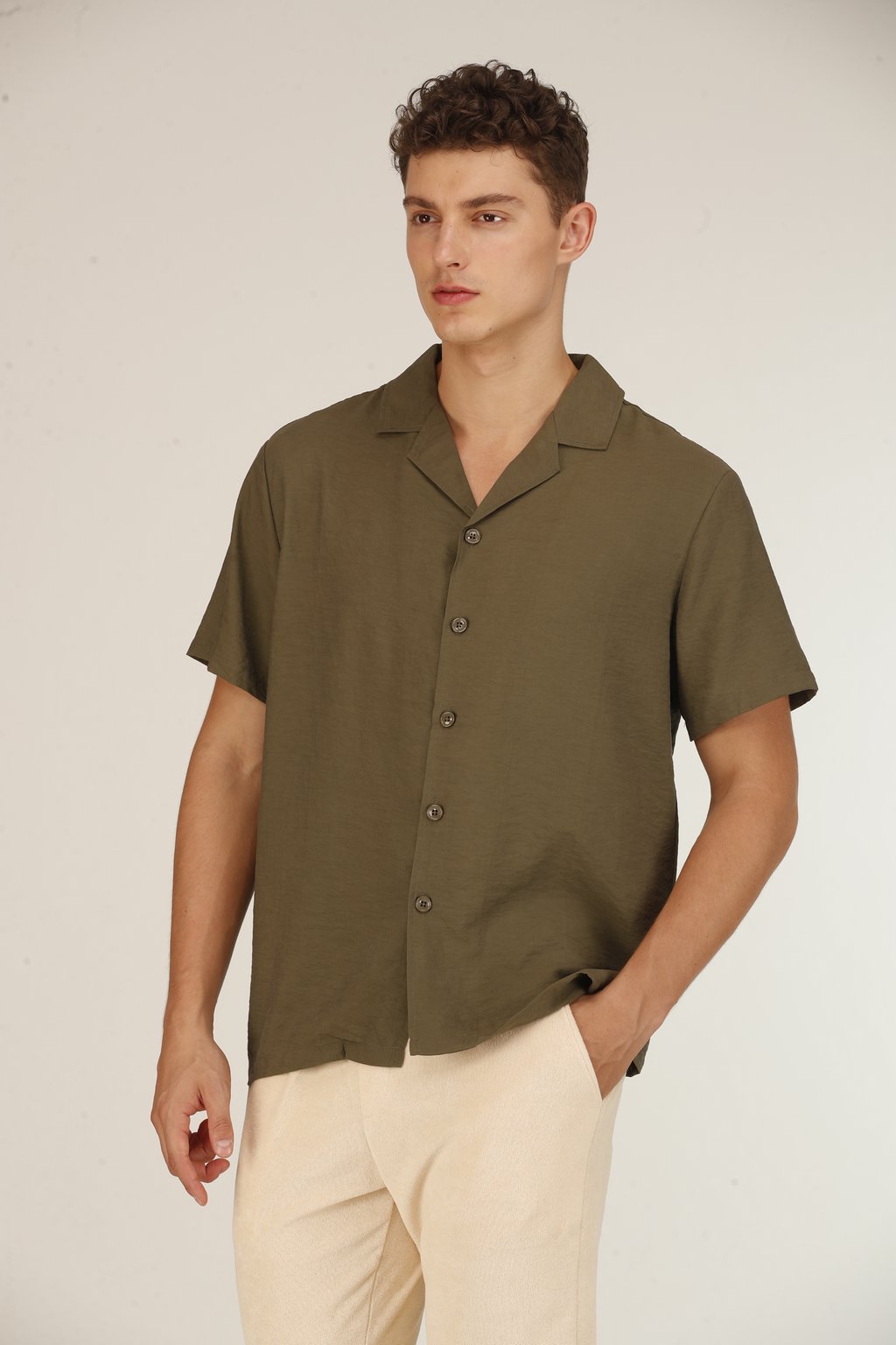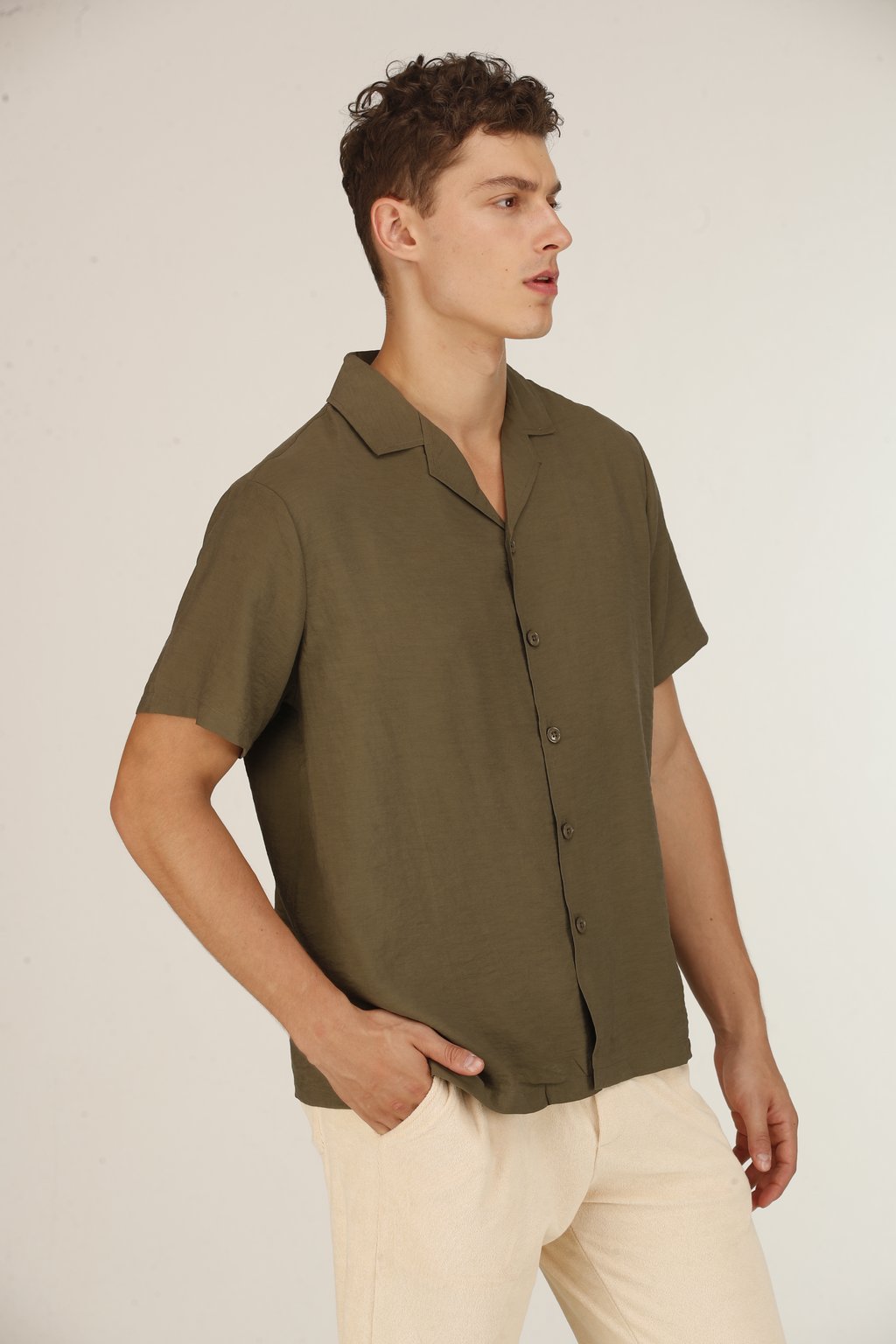 Chemise Cubaine en Soie Kaki Homme