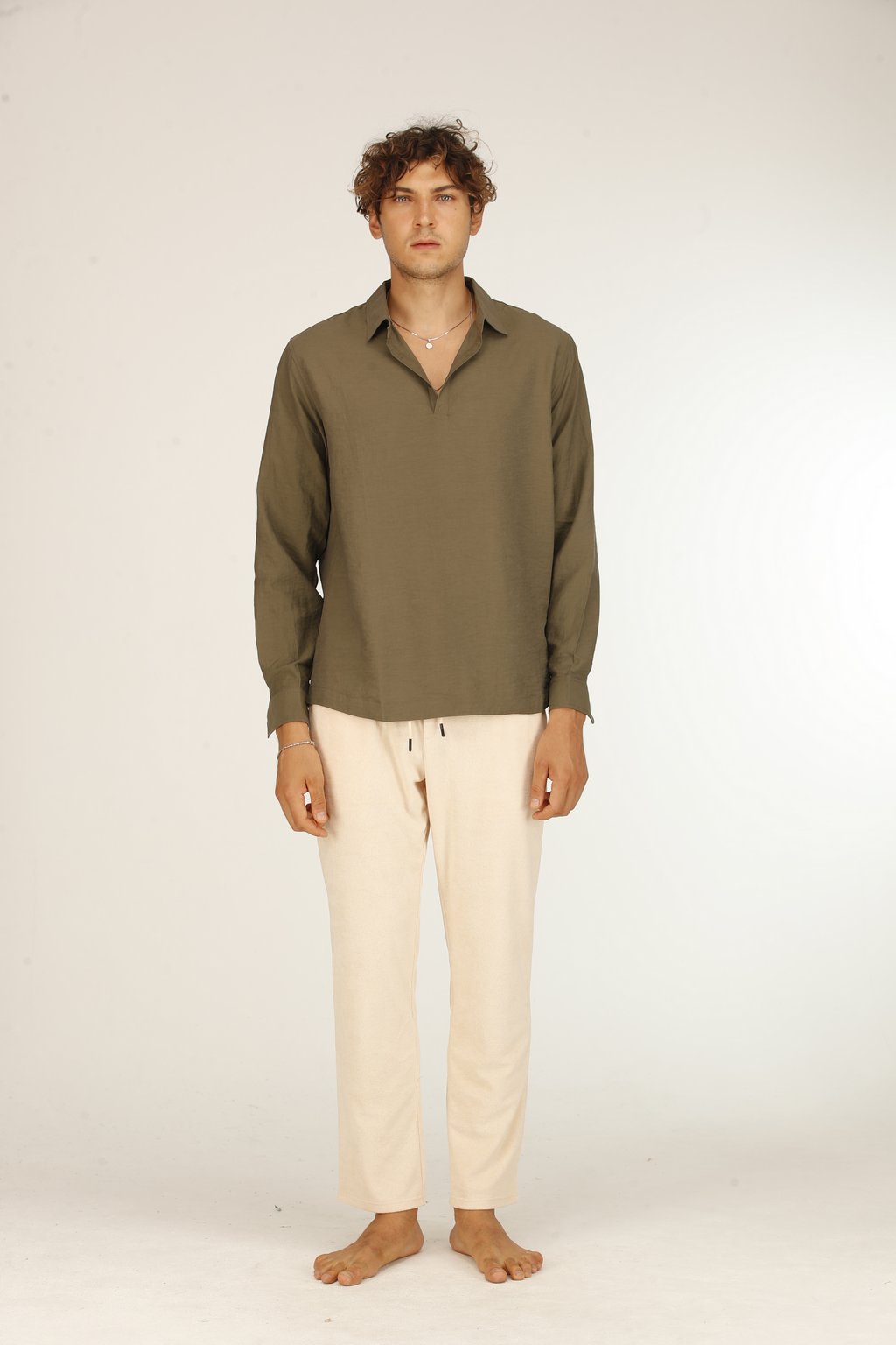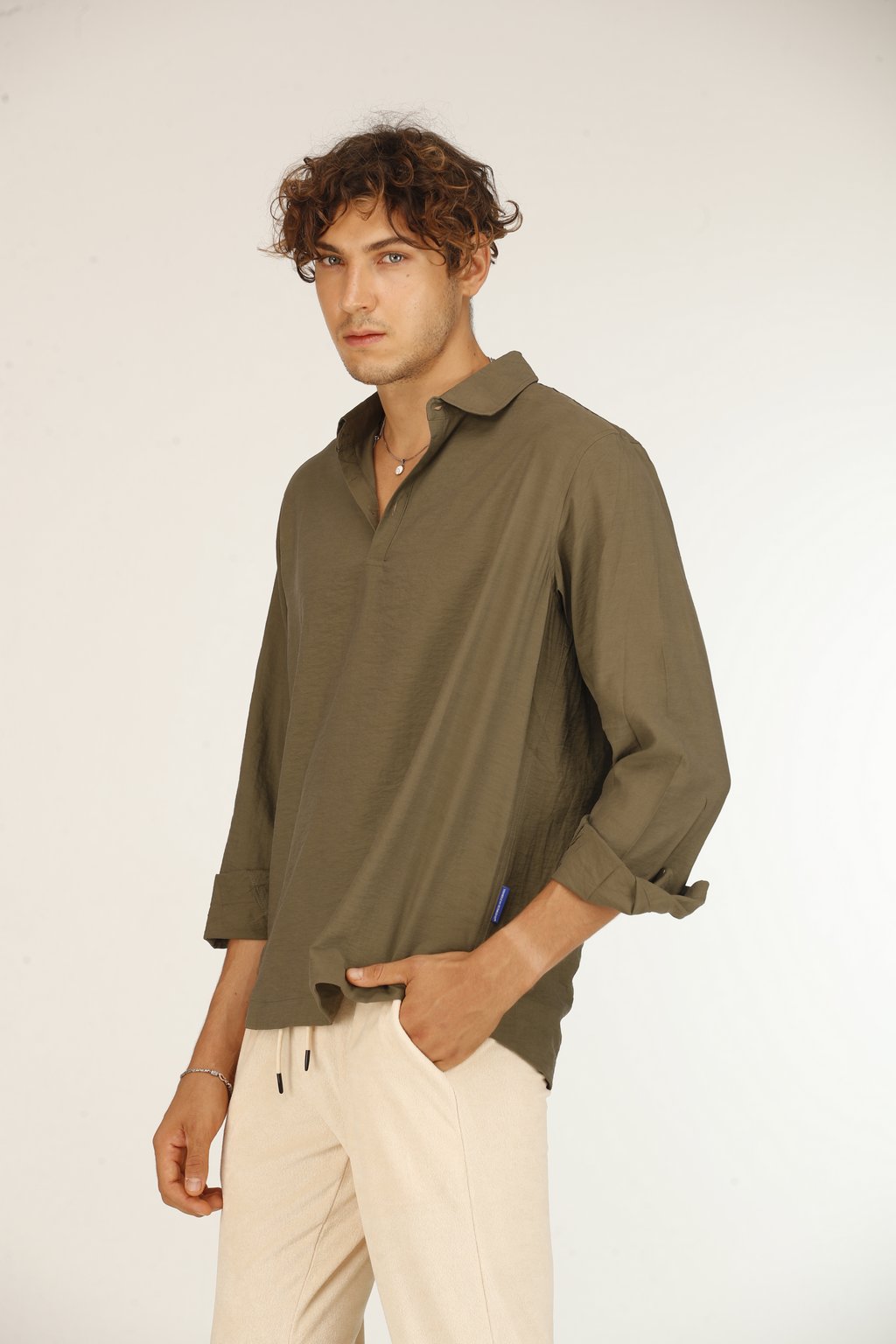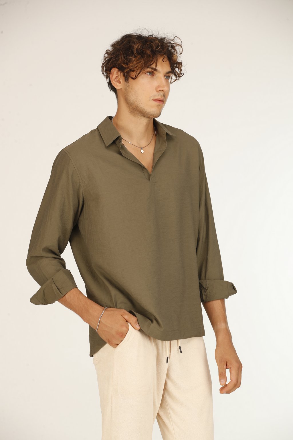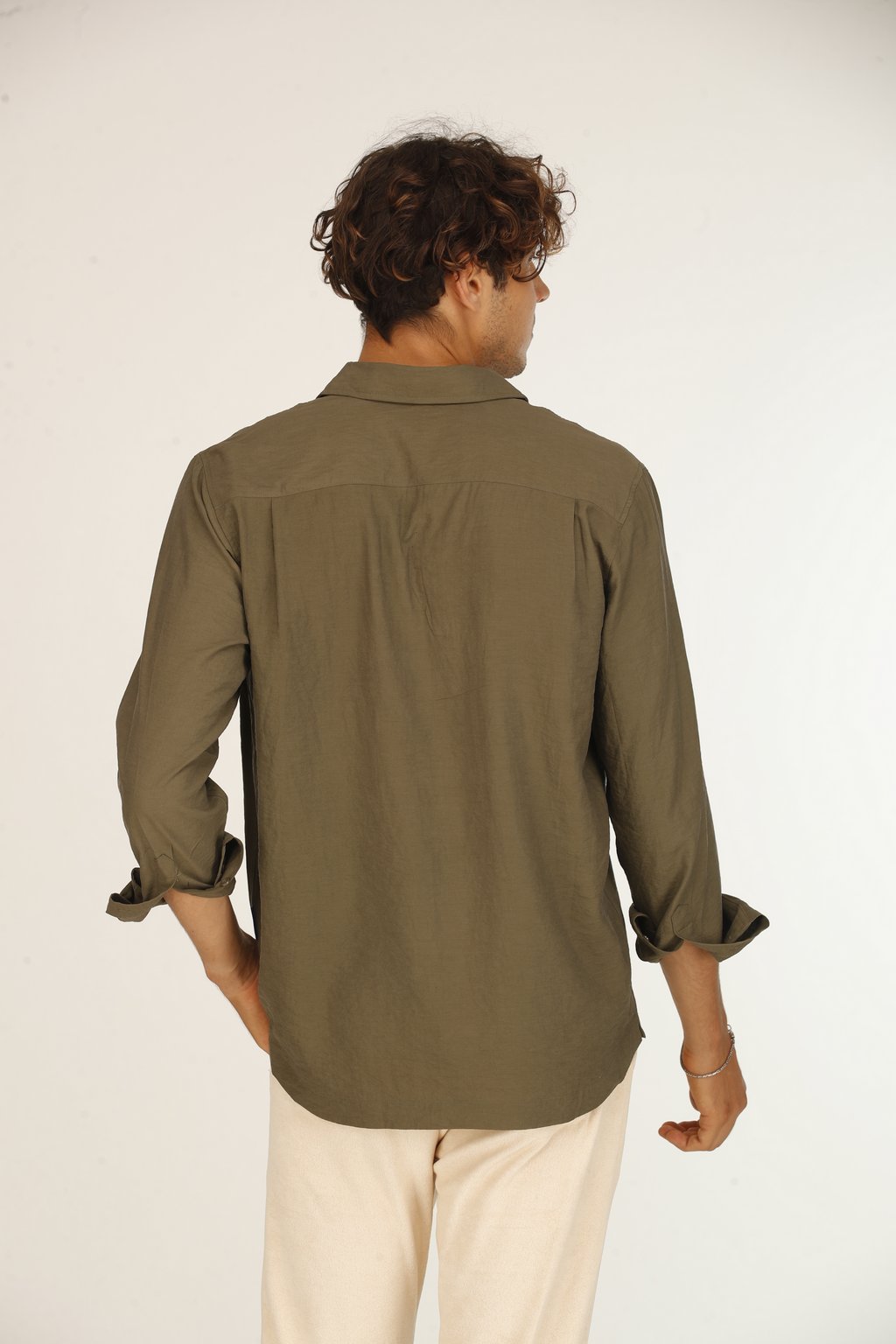 Chemise Décontractée en Soie Kaki Homme