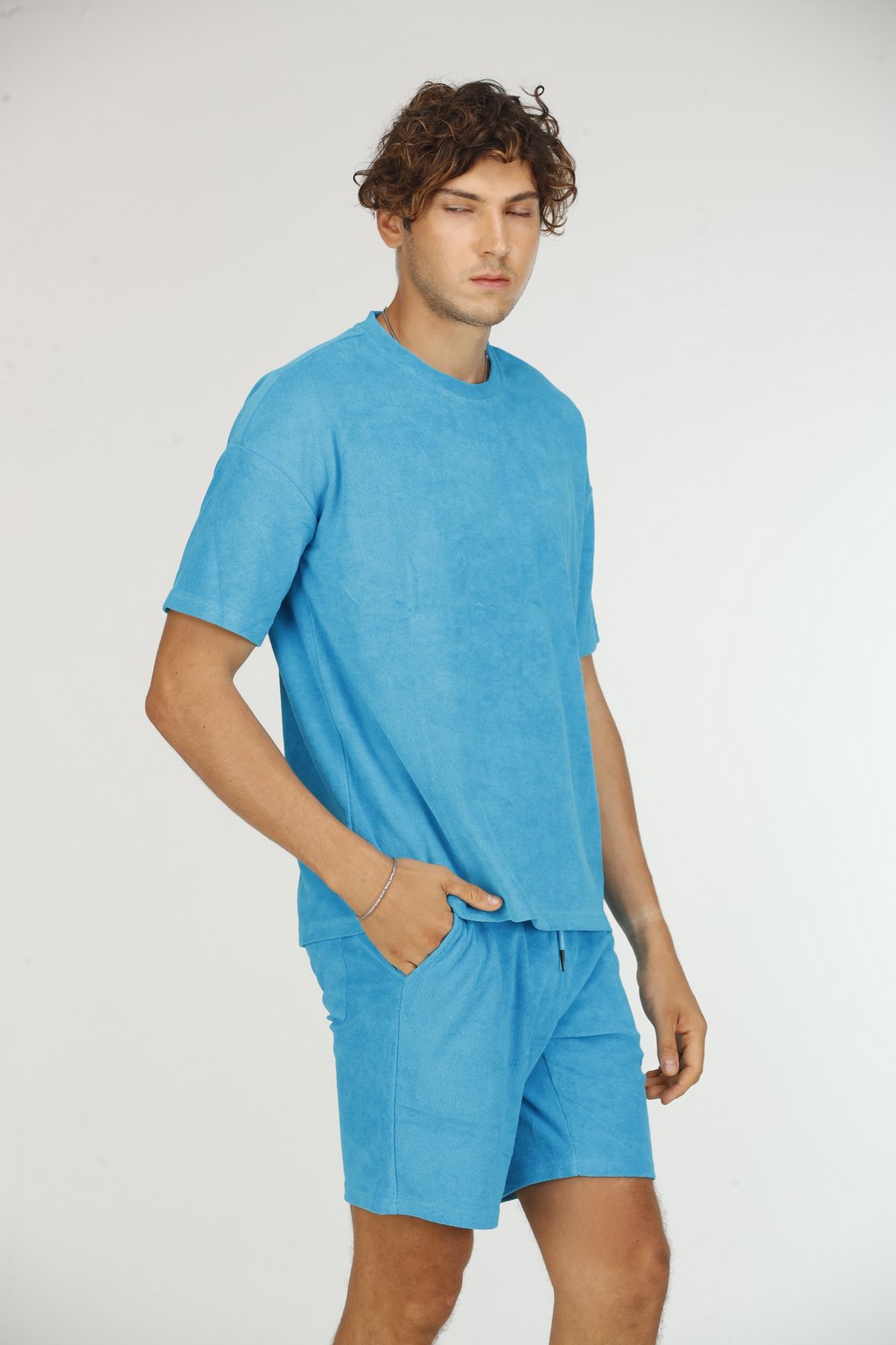 T-shirt en tissu éponge Turquoise Homme