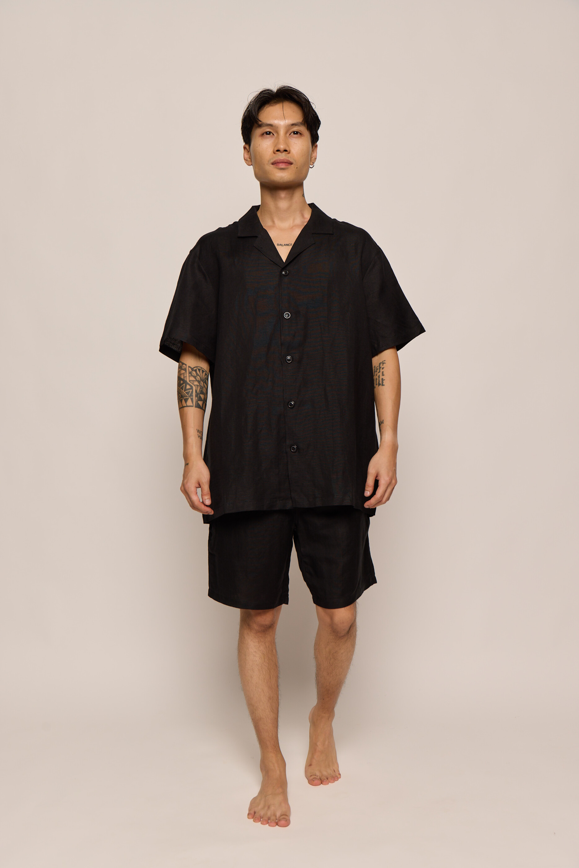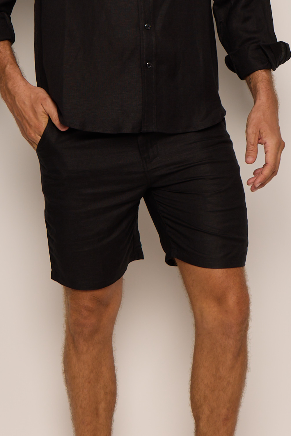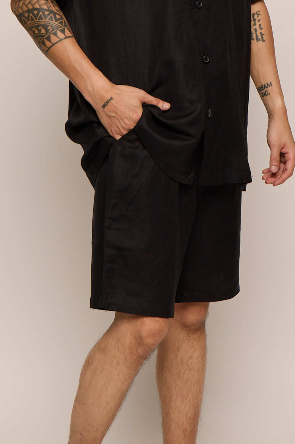 Men’s Black Linen Bermuda Shorts