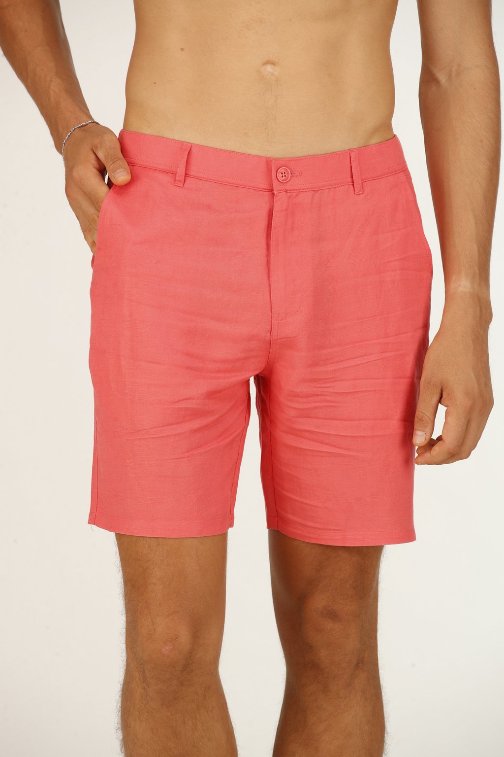 Pair these linen Bermuda shorts with a shirt or a polo for an elegant and casual look. You can also make a turn-up hem if you prefer to wear it shorter.