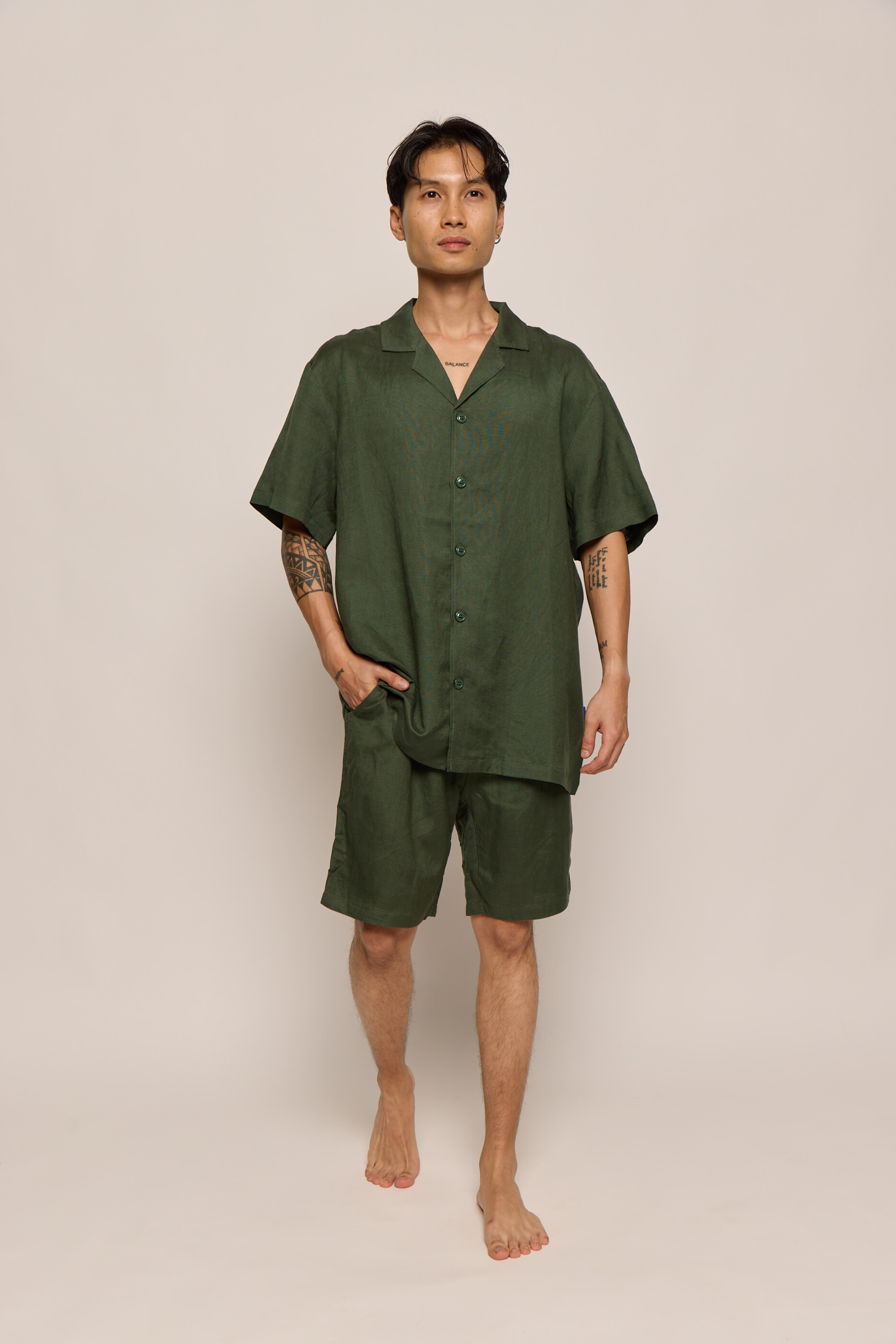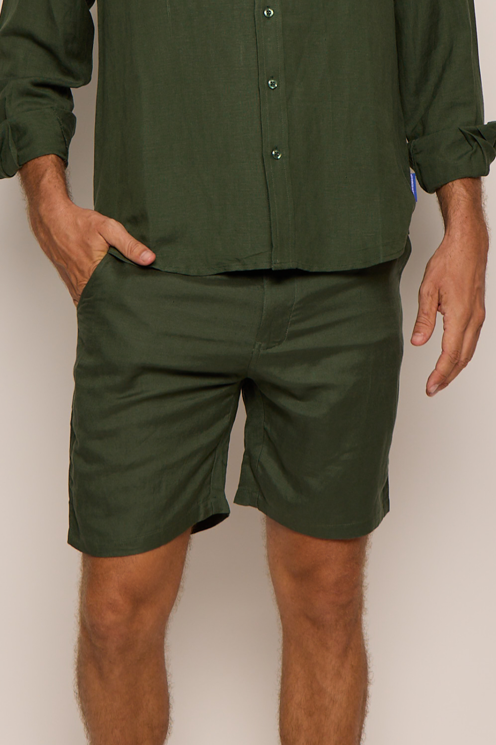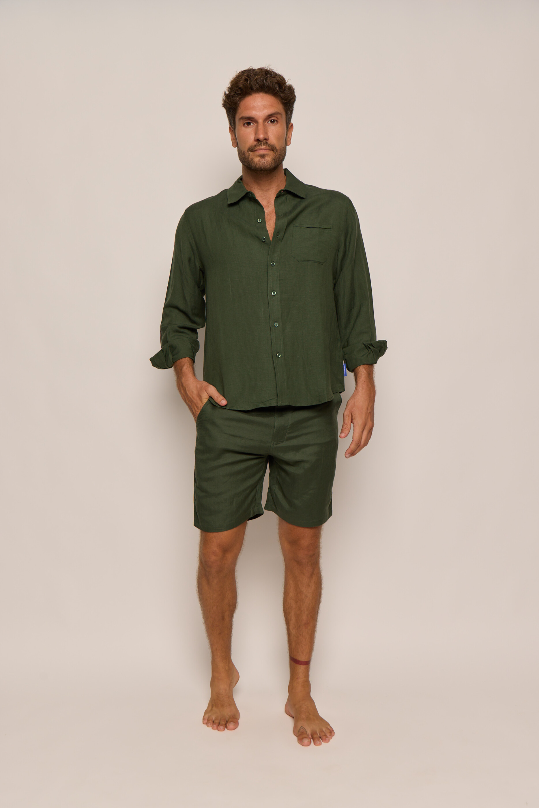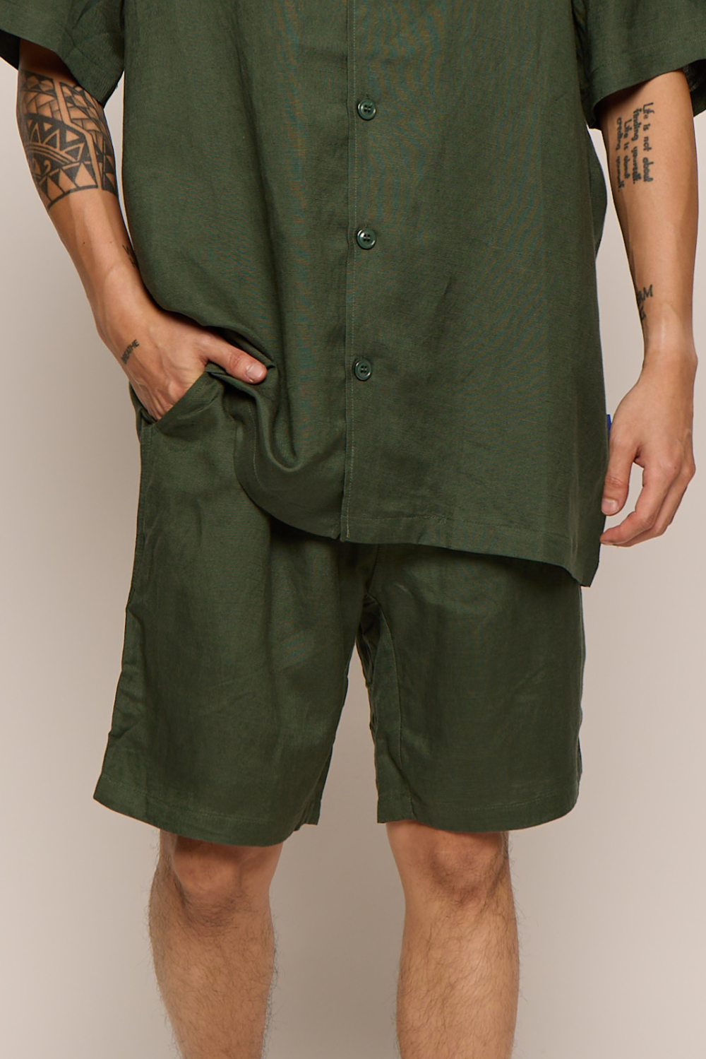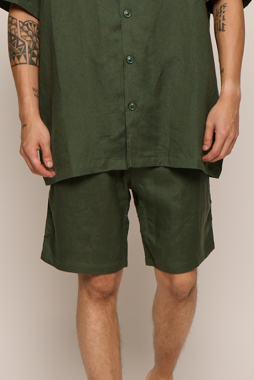 Men’s Green Forest Linen Bermuda Shorts