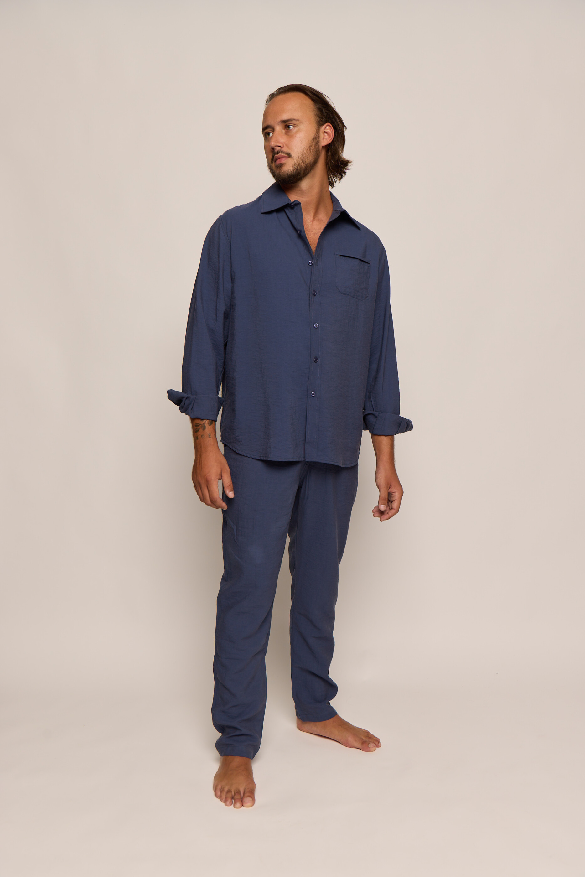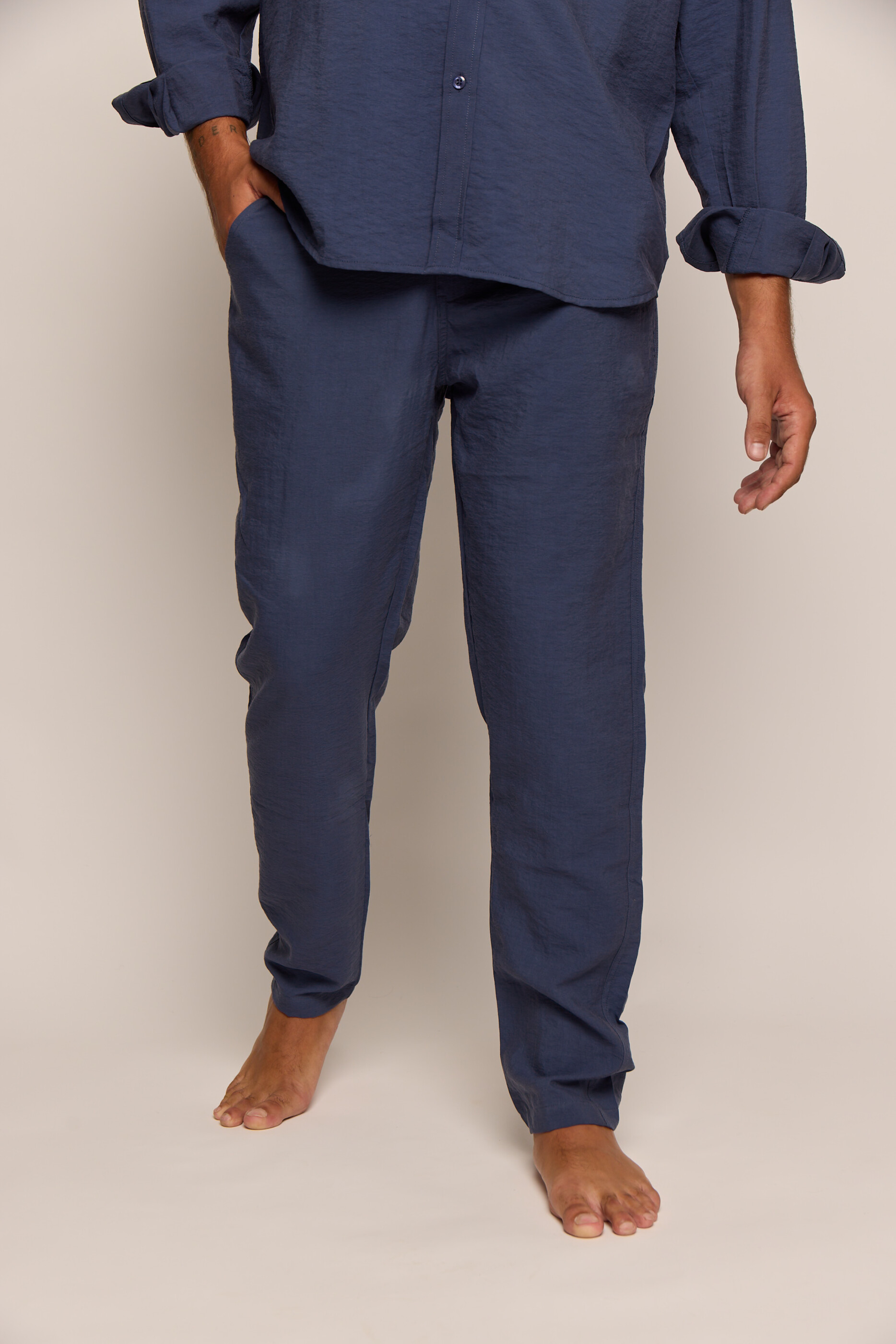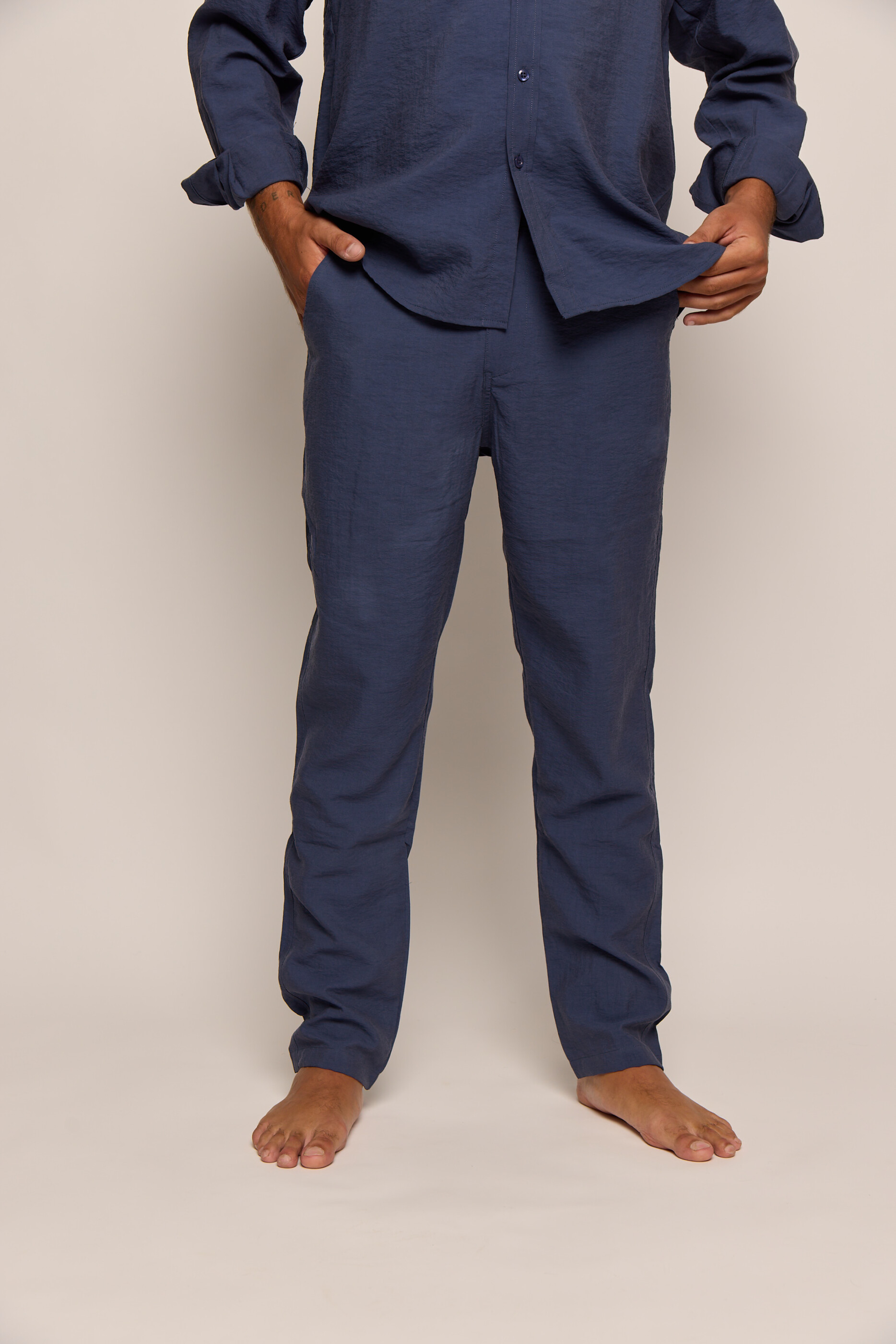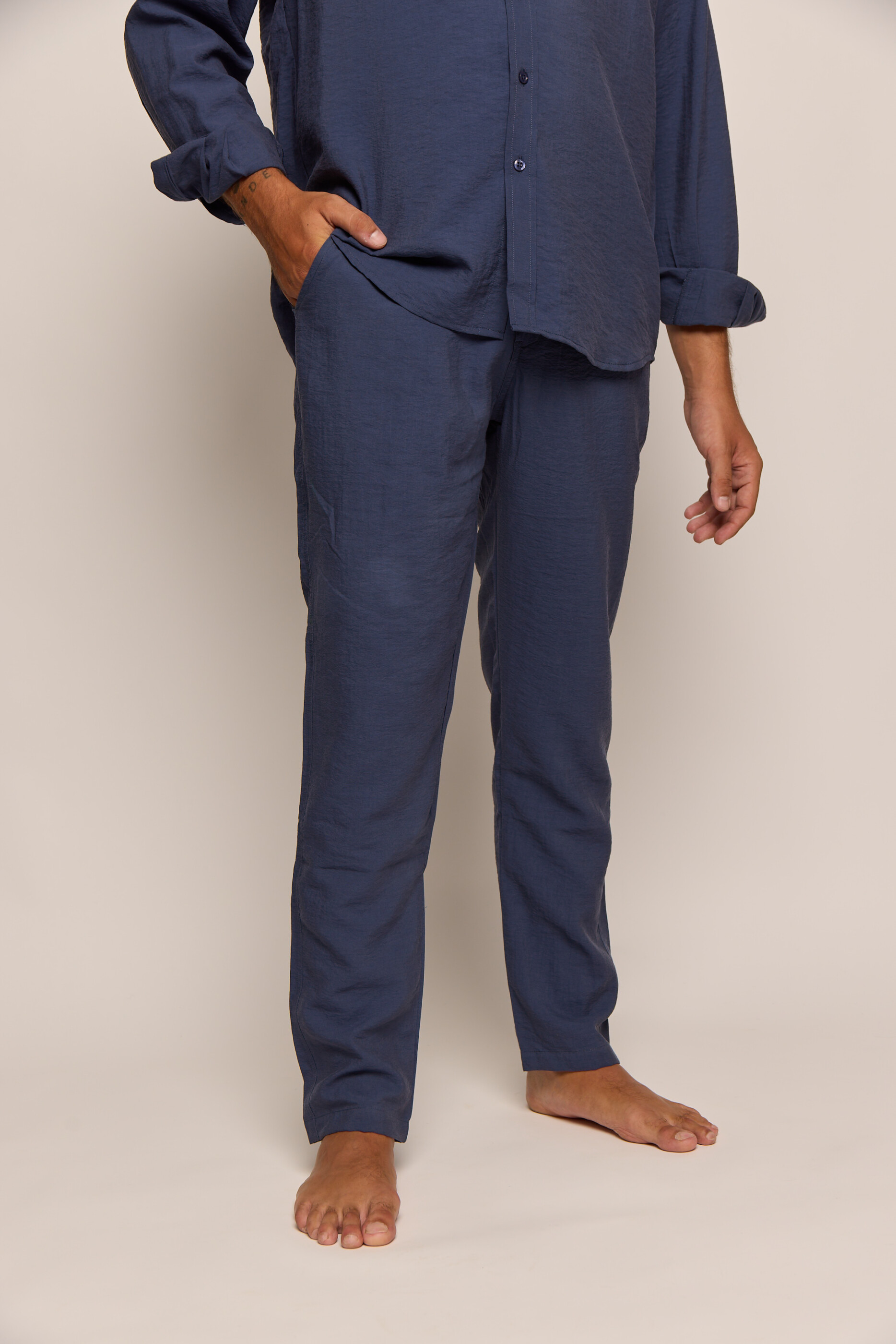 Men’s Navy Blue Silk Classic Pants
