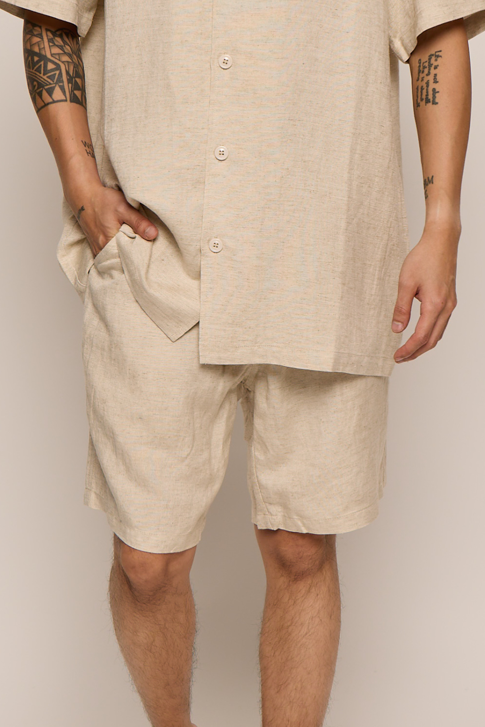 Pair these linen Bermuda shorts with a shirt or a polo for an elegant and casual look. You can also make a turn-up hem if you prefer to wear it shorter.
