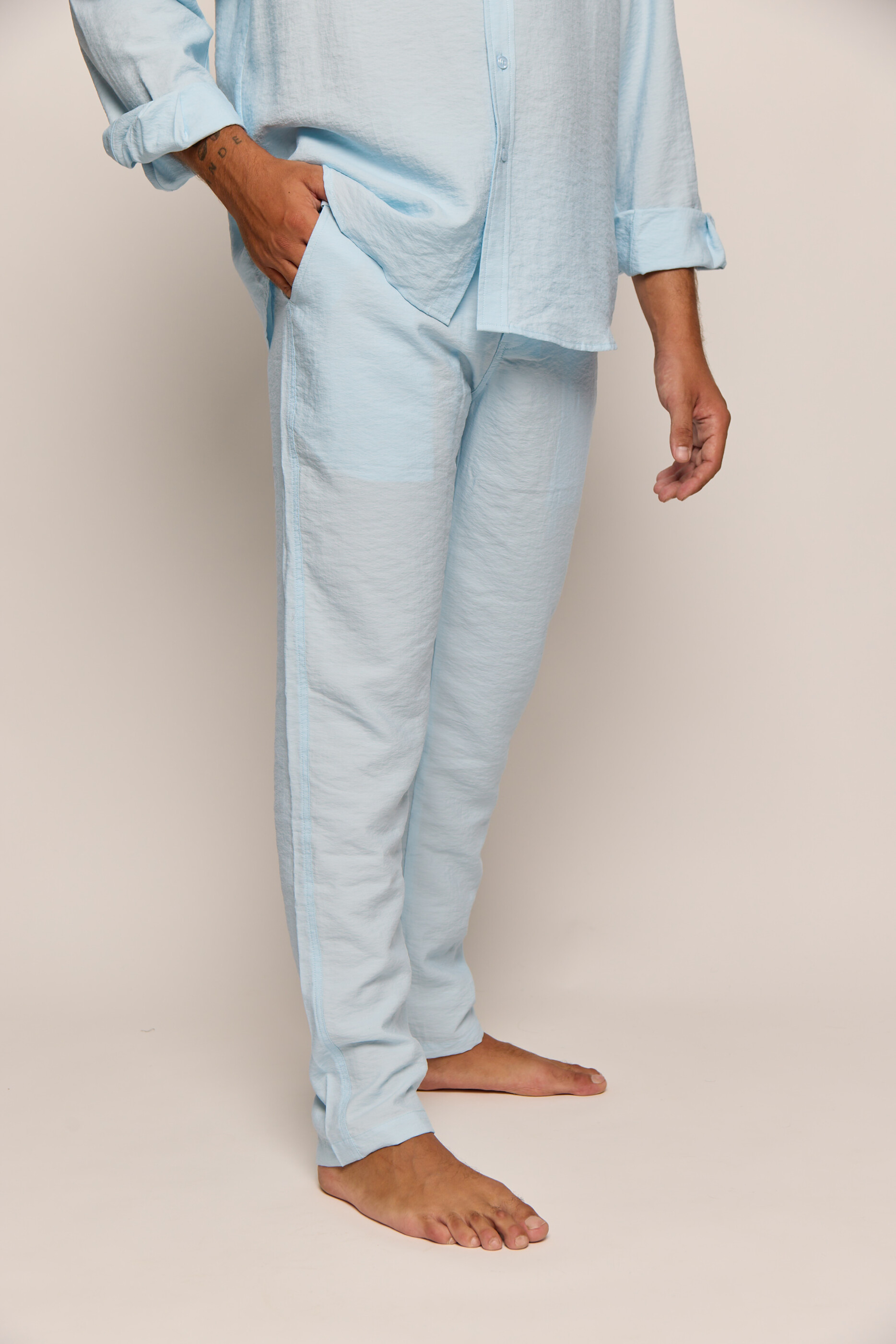Men’s Polar Blue Silk Classic Pants