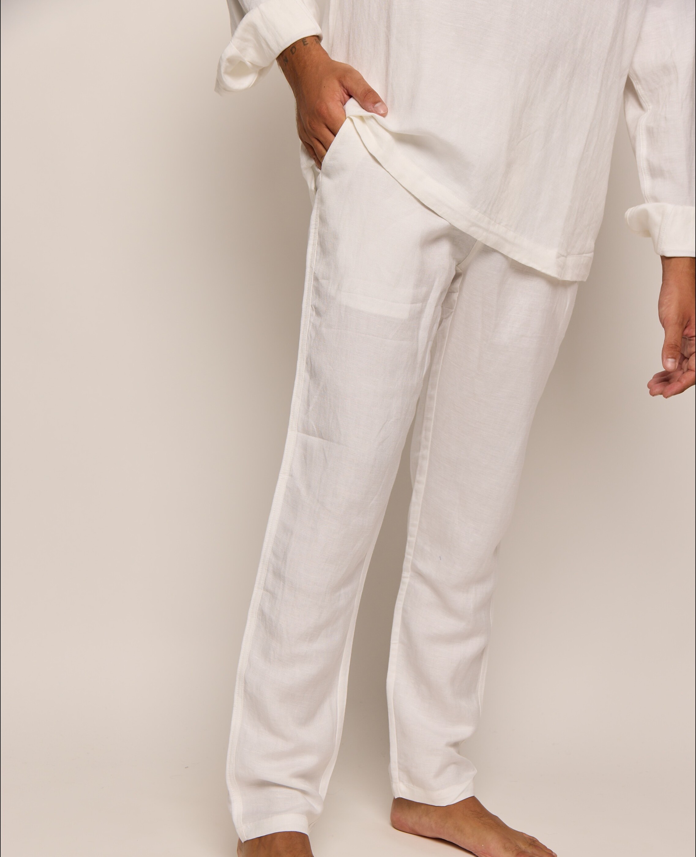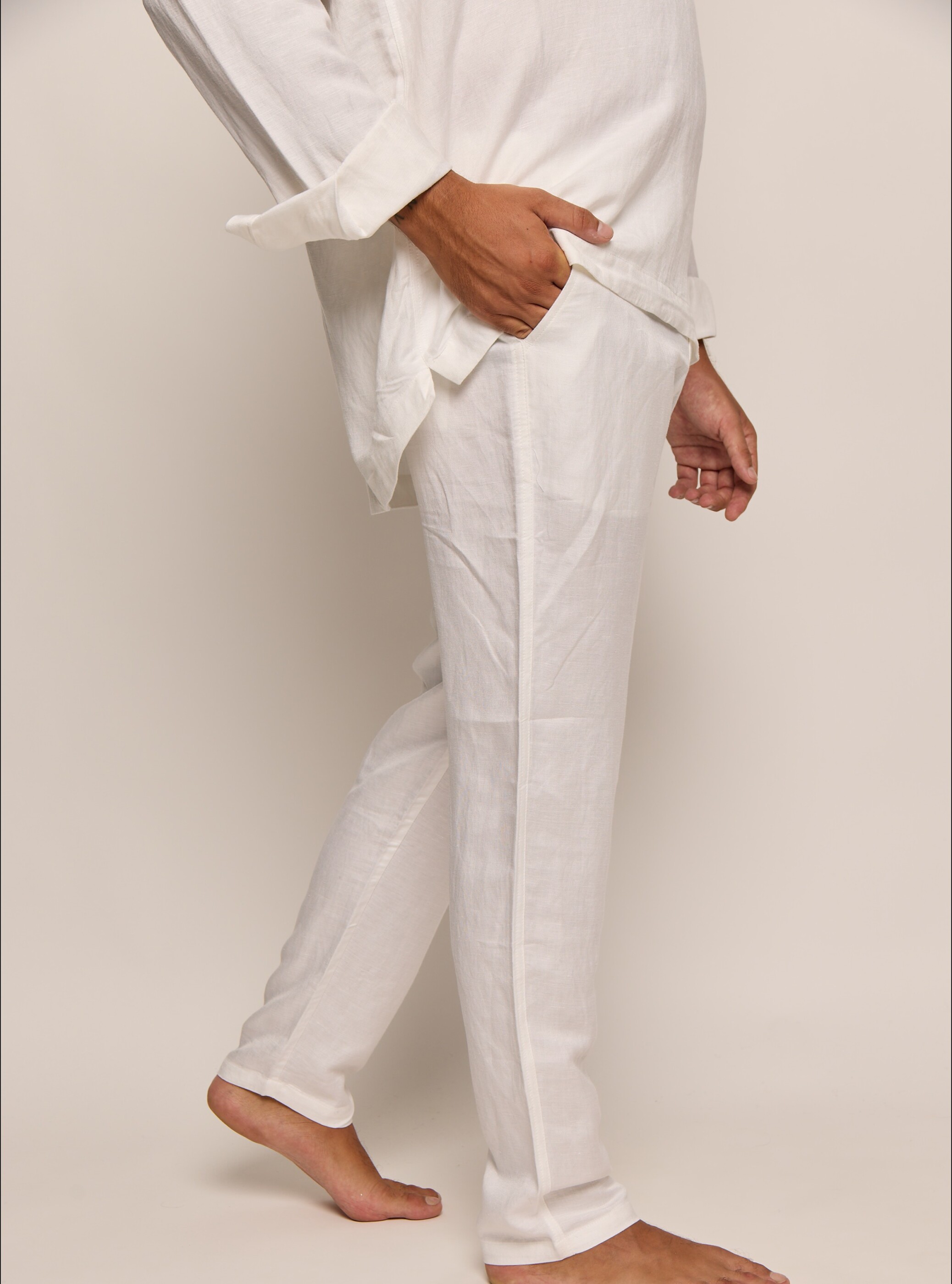 Men’s White Classic Linen Pants